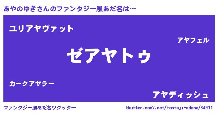| 伝説のあだ名 | 『古より伝わる暗殺者あやのゆき』 |