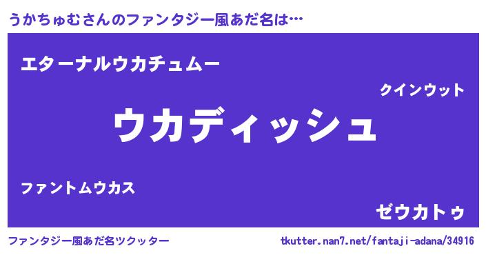 | ヒーロー風カッコイイあだ名 | 『ネオウカチュム』『暗黒騎士ウカ』 |