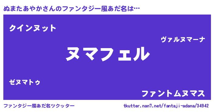 | 男性向けラノベタイトル風あだ名 | 『ヌマタアヤカアートオンライン』 |
