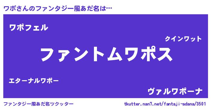 | 女子向けラノベタイトル風あだ名 | 『ワポ様がみてる』『ワポ姫と円卓の騎士』 |
