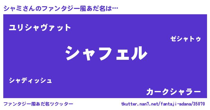 | ヒーロー風カッコイイあだ名 | 『スーパーシャミ』『ウルトラ戦士シャミ』 |