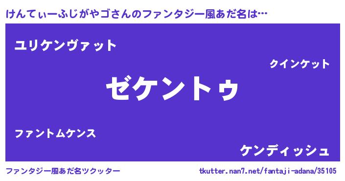 | 意味不明あだ名 | 『自称けんてぃーふじがやゴ』 |