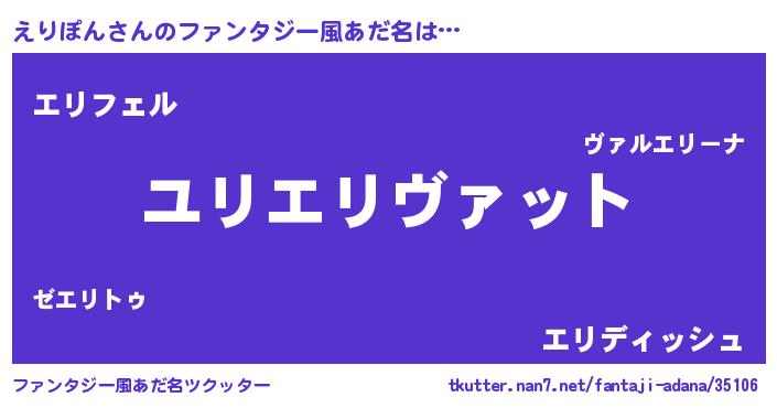 | 男性向けラノベタイトル風あだ名 | 『えりぽん~年齢イコール彼女いない歴の魔法使い~』 |