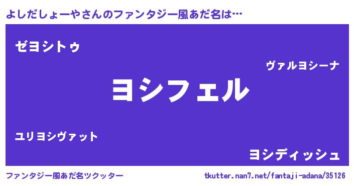 | 男性向けラノベタイトル風あだ名 | 『ヨシダショーヤアートオンライン』 |