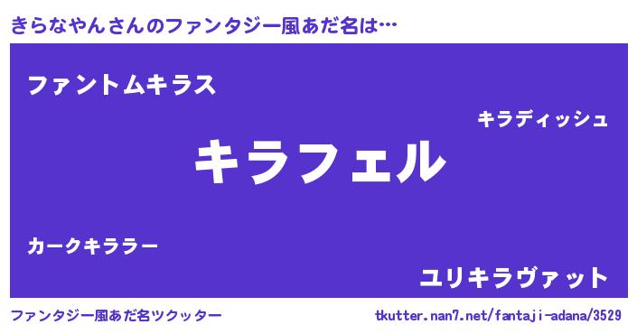 | ヘコむあだ名 | 『きらふぇ~』『きら太郎』『つくし』 |