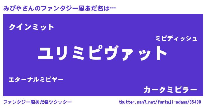 | 女子向けラノベタイトル風あだ名 | 『みぴやの玉の輿計画!』 |