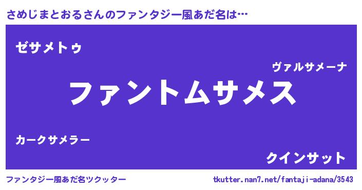 | ヘコむあだ名 | 『さめお』『さめっふぃ~』 |