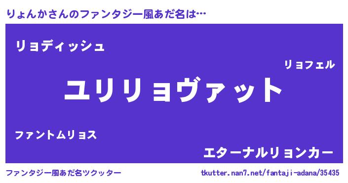 | 男性向けラノベタイトル風あだ名 | 『転生したらりょんかだった件』 |