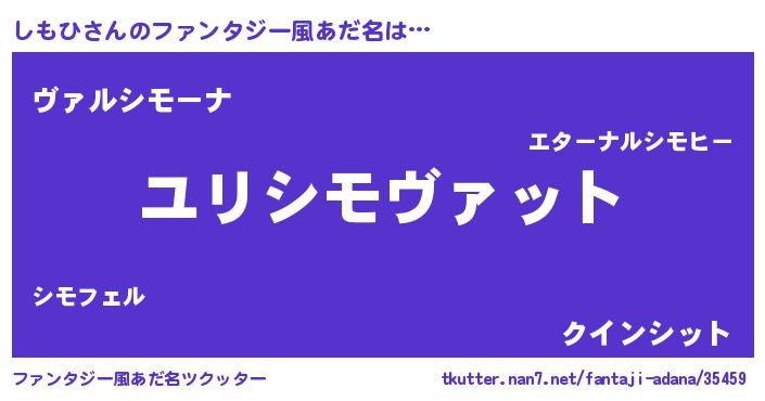 | 男性向けラノベタイトル風あだ名 | 『シモヒスレイヤー』『魔弾の王としもひ』 |