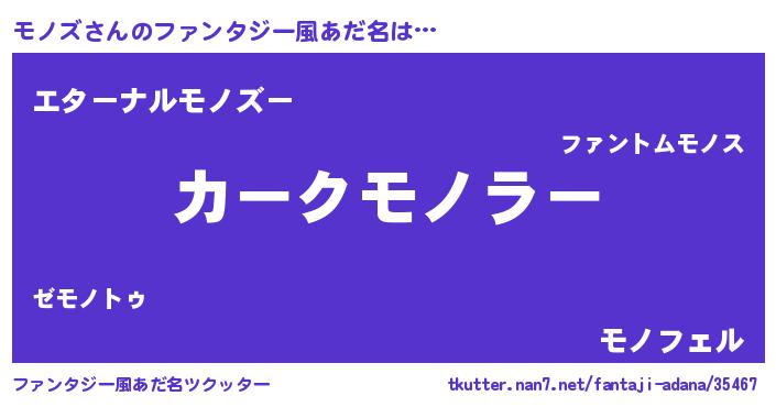 | 男性向けラノベタイトル風あだ名 | 『緋弾のモノズ』『モノズの憂鬱』 |