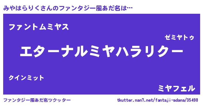 | 女子向けラノベタイトル風あだ名 | 『みやはらりくの雑貨屋さん』 |