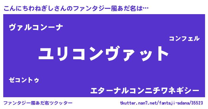 | 男性向けラノベタイトル風あだ名 | 『コンニチワネギシスレイヤー』 |