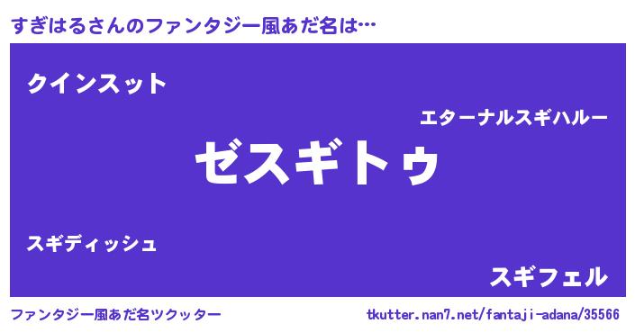 | 男性向けラノベタイトル風あだ名 | 『すぎはるに滅ぼされるだけの簡単なお仕事です』 |