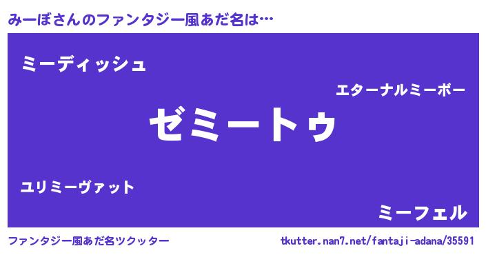 | ポケモン風あだ名 | 『ミーセウス』『ゼニミー』 |