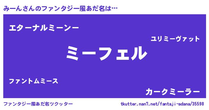 | 女子向けラノベタイトル風あだ名 | 『みーん姫と円卓の騎士』 |