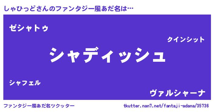 | 意味不明あだ名 | 『永久保存しゃひっど』『自称しゃひっど』 |