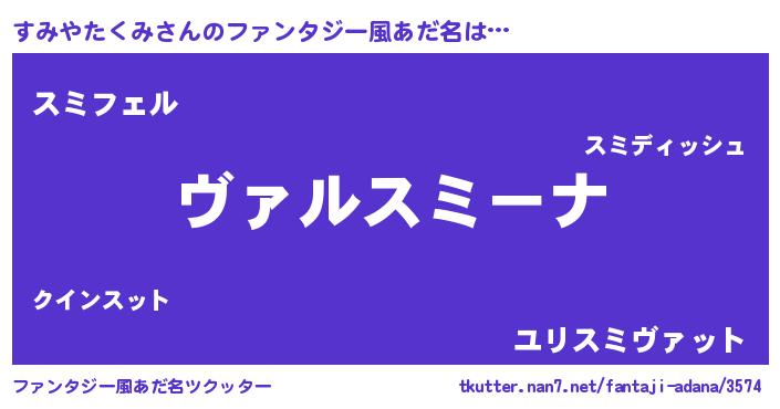 | ヘコむあだ名 | 『すみっふぃ~』『すみやたくみ(震え声)』 |