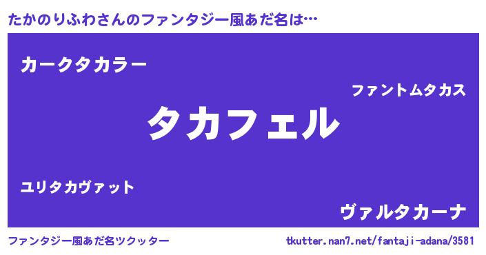 | 男性向けラノベタイトル風あだ名 | 『タカノリフワアートオンライン』 |