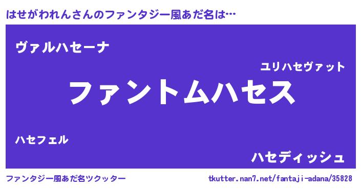 | 意味不明あだ名 | 『とにかく怪しいはせがわれん』 |