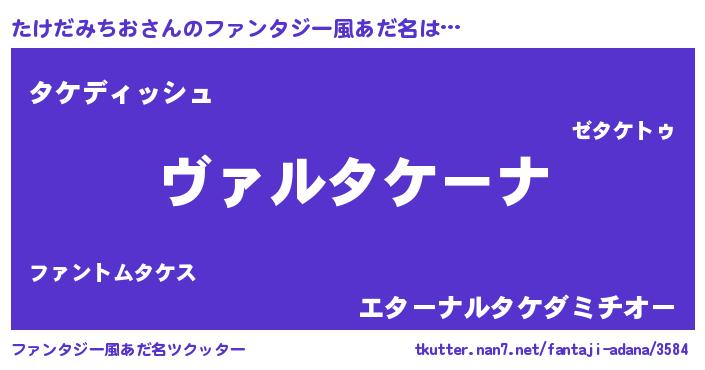 | 女子向けラノベタイトル風あだ名 | 『悪役たけだみちおに転生したようですが、知った事ではありません』 |