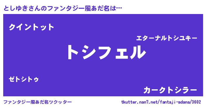 | 男性向けラノベタイトル風あだ名 | 『としゆきに滅ぼされるだけの簡単なお仕事です』 |