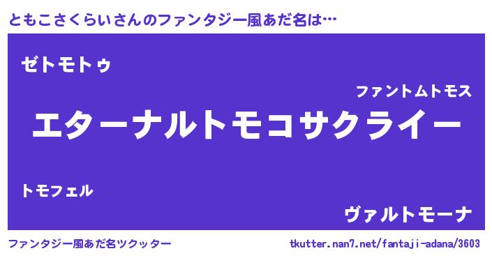 | 女子向けラノベタイトル風あだ名 | 『ともこさくらいの婚約者』 |