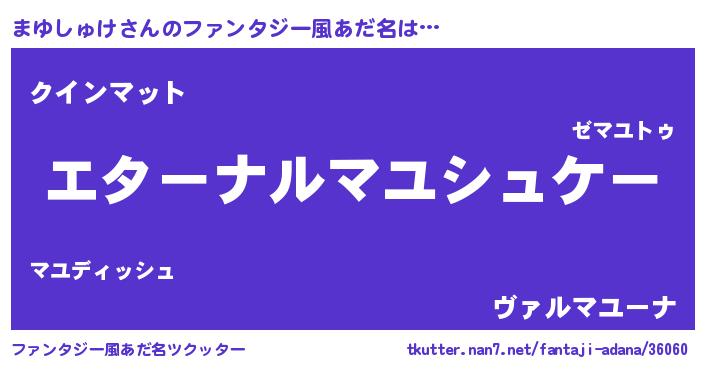 | 欧米人風あだ名 | 『まゆしゅけクリステル』 |