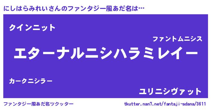 | 意味不明あだ名 | 『にしはらみれいフォーエバー』 |