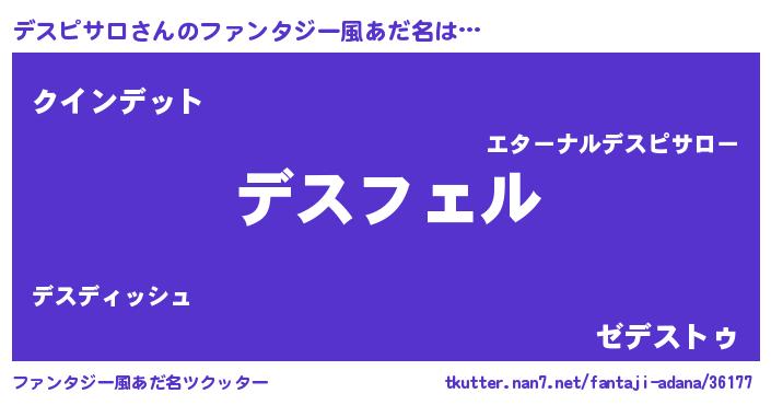 | 男性向けラノベタイトル風あだ名 | 『デスピサロアートオンライン』 |