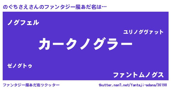 | 自動車の名前っぽいあだ名 | 『フェノーグ』『ノグティマ』 |