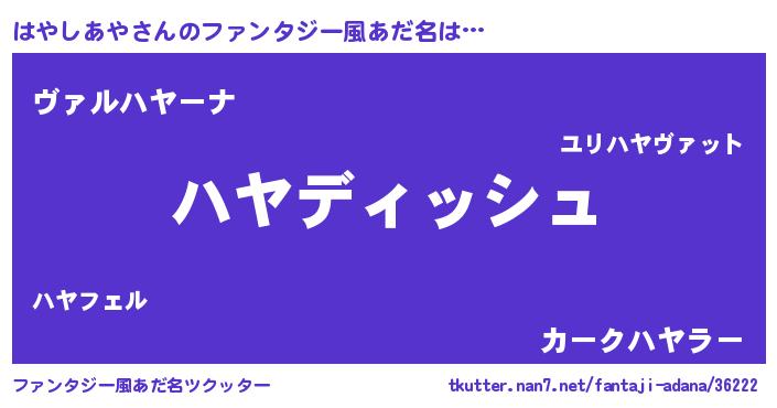| ヘコむあだ名 | 『はやしあや(遠い目)』『はやっふぃ~』 |