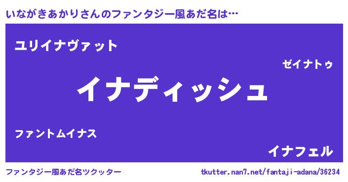 | ヘコむあだ名 | 『いながきあかり(震え声)』『いなふぇ~』 |