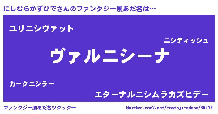 | 男性向けラノベタイトル風あだ名 | 『この素晴らしい世界ににしむらかずひでを!』 |