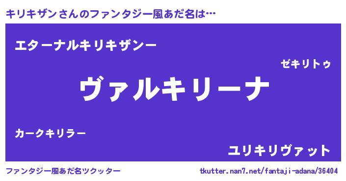 | 男性向けラノベタイトル風あだ名 | 『この素晴らしい世界にキリキザンを!』 |