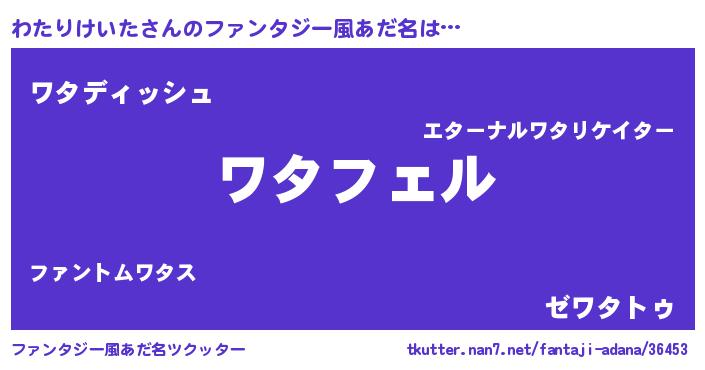 | 男性向けラノベタイトル風あだ名 | 『わたりけいたに滅ぼされるだけの簡単なお仕事です』 |