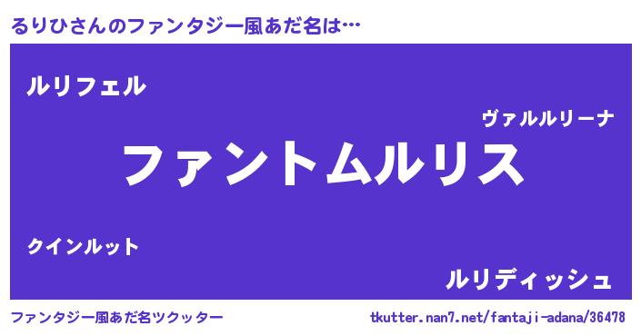 | 男性向けラノベタイトル風あだ名 | 『ダンジョンにるりひを求めるのは間違っているだろうか』 |