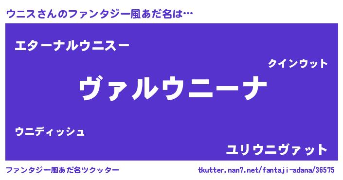 | 男性向けラノベタイトル風あだ名 | 『この素晴らしい世界にウニスを!』 |