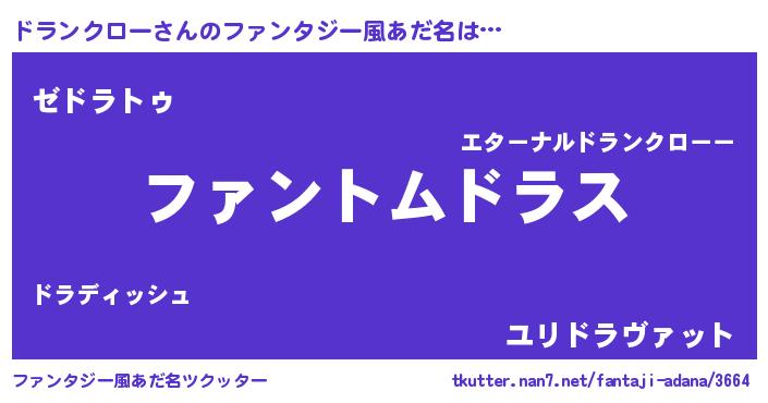 | 男性向けラノベタイトル風あだ名 | 『ダンジョンにドランクローを求めるのは間違っているだろうか』 |
