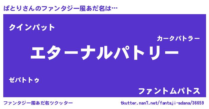 意味不明あだ名 | 『ぱとりフォーエバー』『自称ぱとり』 |