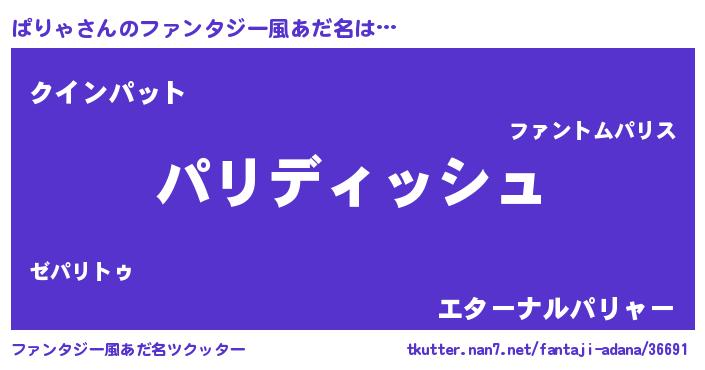 | 男性向けラノベタイトル風あだ名 | 『ぱりゃという概念が存在しない退屈な世界 』 |