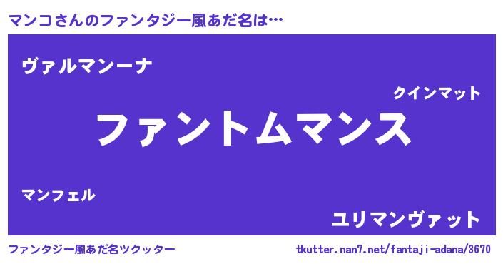 | ポケモン風あだ名 | 『ヒマンコ』『マンゴンZ』『マーンイ』 |