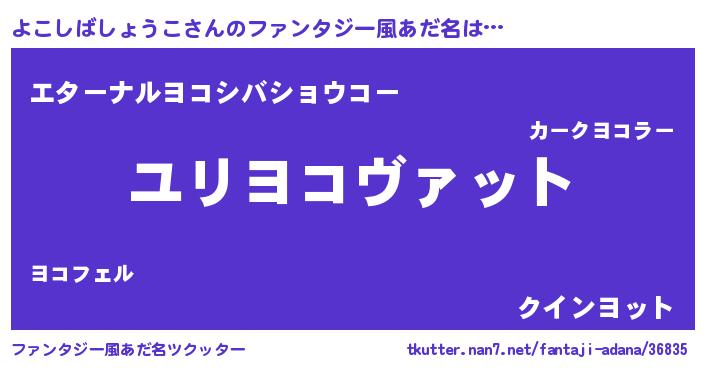 | 男性向けラノベタイトル風あだ名 | 『転生したらよこしばしょうこだった件』 |
