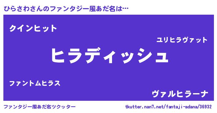 | 男性向けラノベタイトル風あだ名 | 『ひらさわという概念が存在しない退屈な世界 』 |