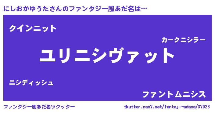 | 男性向けラノベタイトル風あだ名 | 『ニシオカユウタスレイヤー』 |
