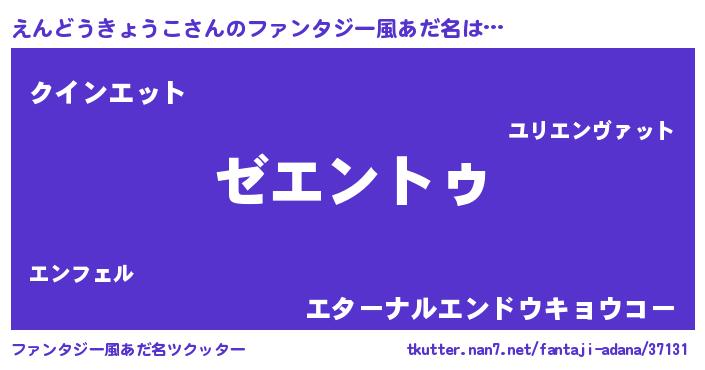 | 女子向けラノベタイトル風あだ名 | 『えんどうきょうこアンティーク』 |