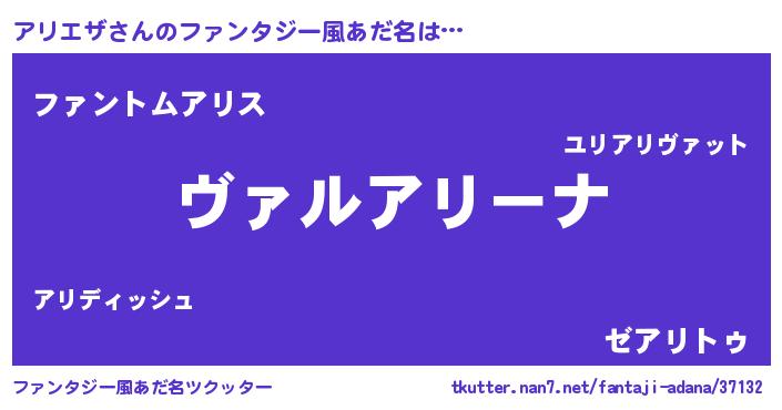 | 男性向けラノベタイトル風あだ名 | 『この素晴らしい世界にアリエザを!』 |