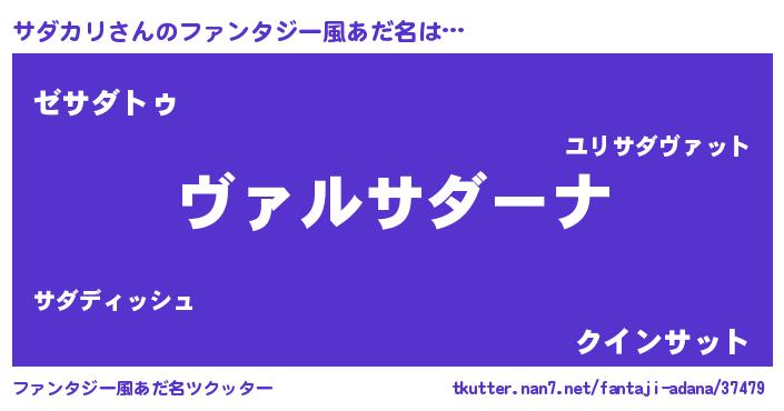 | 男性向けラノベタイトル風あだ名 | 『この素晴らしい世界にサダカリを!』 |