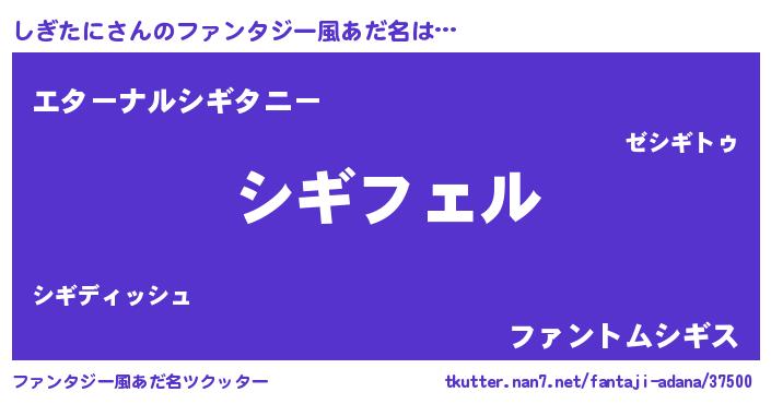 | 男性向けラノベタイトル風あだ名 | 『シギタニアートオンライン』 |