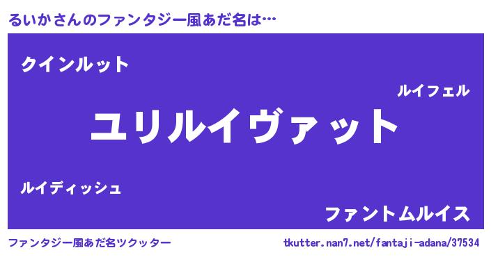 | 男性向けラノベタイトル風あだ名 | 『るいか~年齢イコール彼女いない歴の魔法使い~』 |