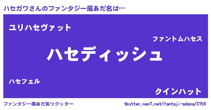 | 男性向けラノベタイトル風あだ名 | 『ハセガワという概念が存在しない退屈な世界 』 |